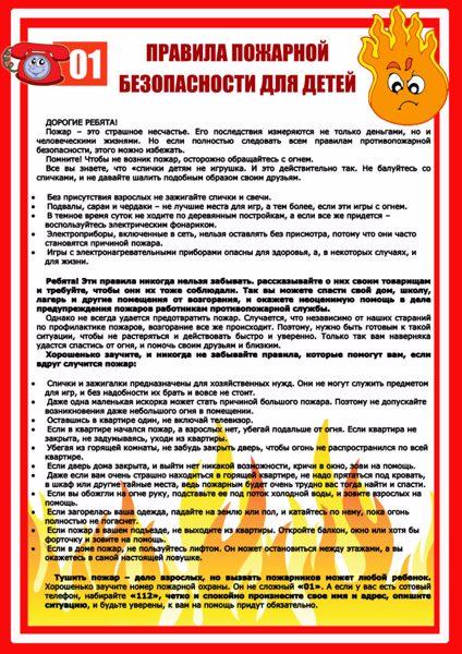 Памятки по пожарной безопасности для родителей и детей