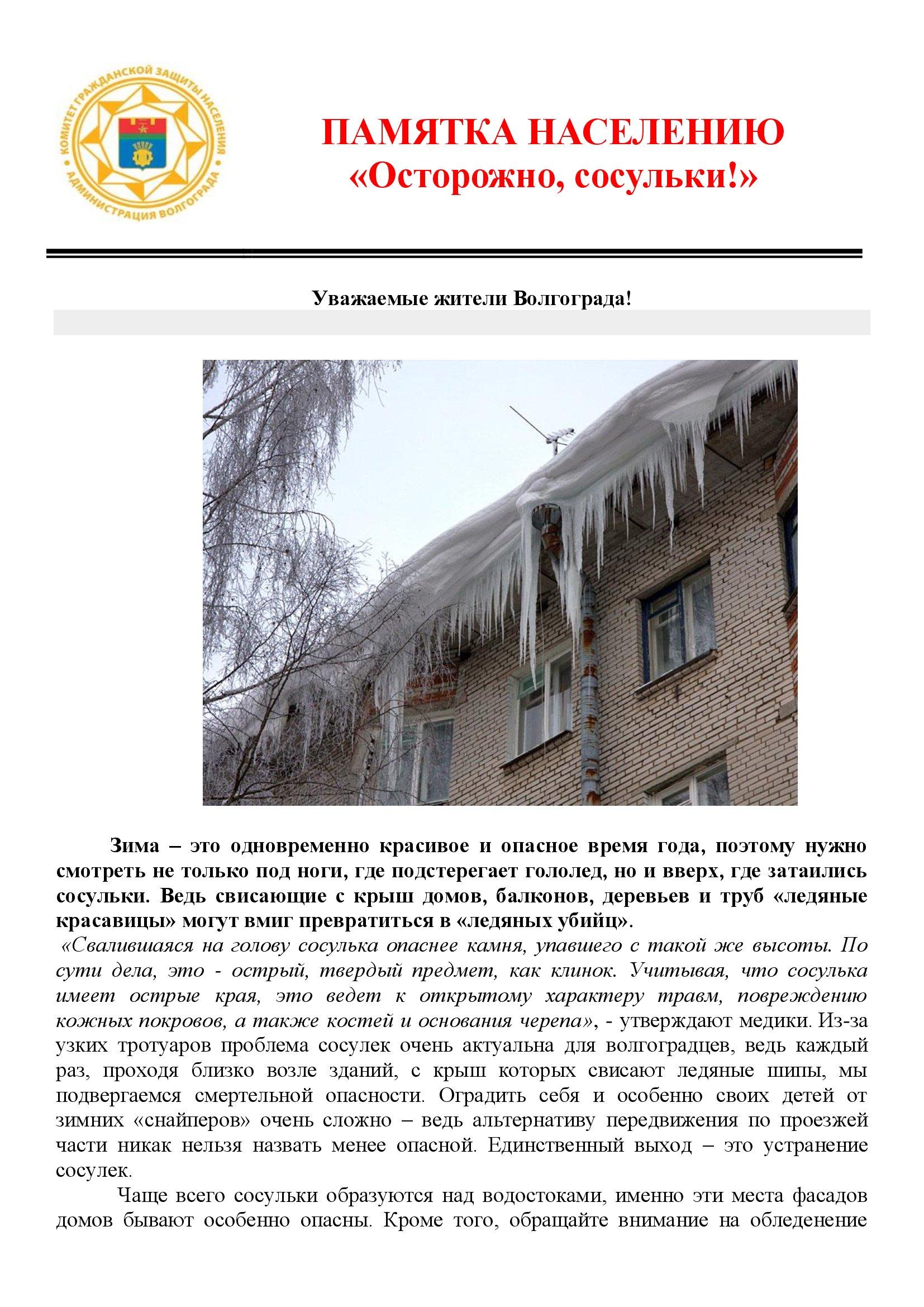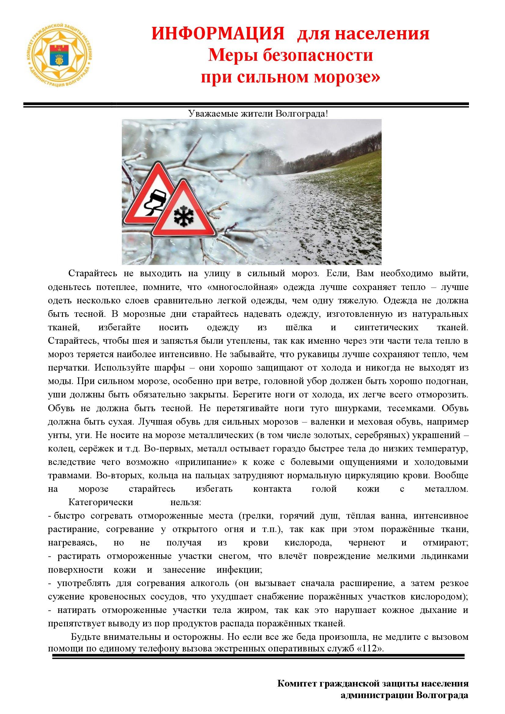 ПАМЯТКИ Комитета гражданской защиты населения администрации Волгограда