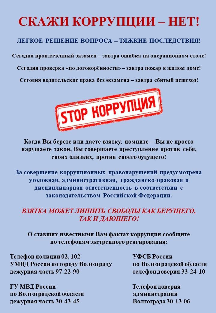 Обратная связь для сообщений о фактах коррупции